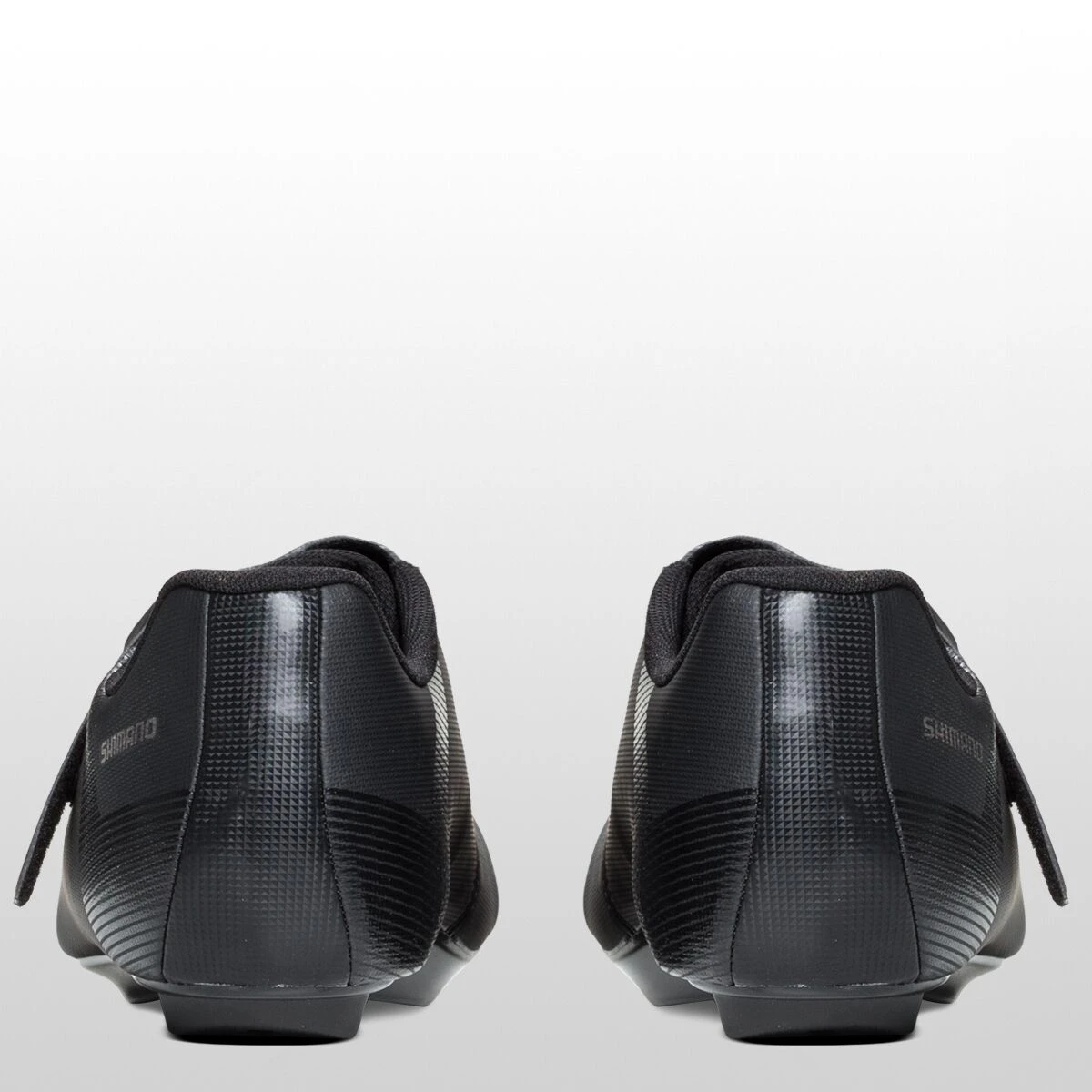 Shimanoโs entry-level RC1 Cycling Shoe hits the sweet spot between spin-class readiness and budget-minded touring. With an eye on simplicity and comfort, the three offset hook-and-loop straps close down to provide a secure and performance-focused fit while keeping a refined and aerodynamic profile. The moderate stiffness of the fiberglass reinforced nylon sole, combined with opening the straps after your interval session, provides a pleasant walking experience compared to highly stiff carbon-soled shoes on the market. The perforated synthetic upper breathes and cleans easily after early spring rides on semi-damp roadways. The RC1 is equipped to pair with 3-bolt cleat systems making it ideal for road-specific cycling or your at-home trainer.