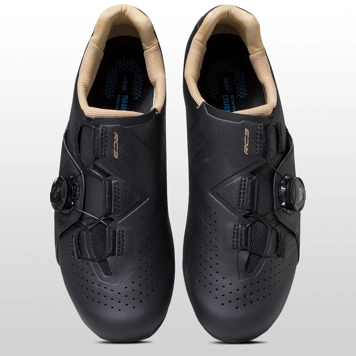 For comfort mile after mile, Shimano integrates the midsole to the upper for a seamless fit and unified form that stabilizes your foot during high power efforts. The RC3 is compatible with 3-bolt cleats for the traditional road pedal platform.
