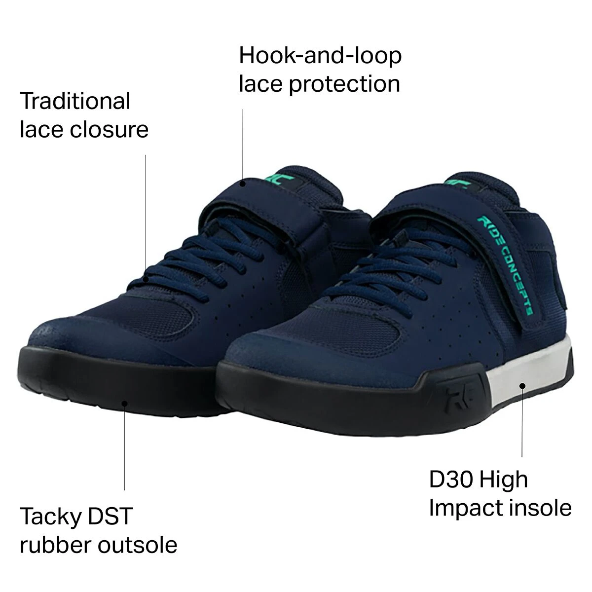 Whether you’re ripping laps at the bike park or embarking on an all-day backcountry adventure, the Ride Concepts Wildcat Shoe is ready to take on any trail with its sticky rubber sole and tough-as-nails construction. And while they share the same features and overall design as the Ride Concepts’ Livewire Shoe, they offer improved stability and better ankle protection thanks to the taller cuff. Durable synthetic uppers with anti-abrasion mesh hold up against rocks and overgrown trails, while the tacky DST 6.0 rubber sole locks your feet firmly to the pedals for unwavering composure in rock gardens and steep terrain.