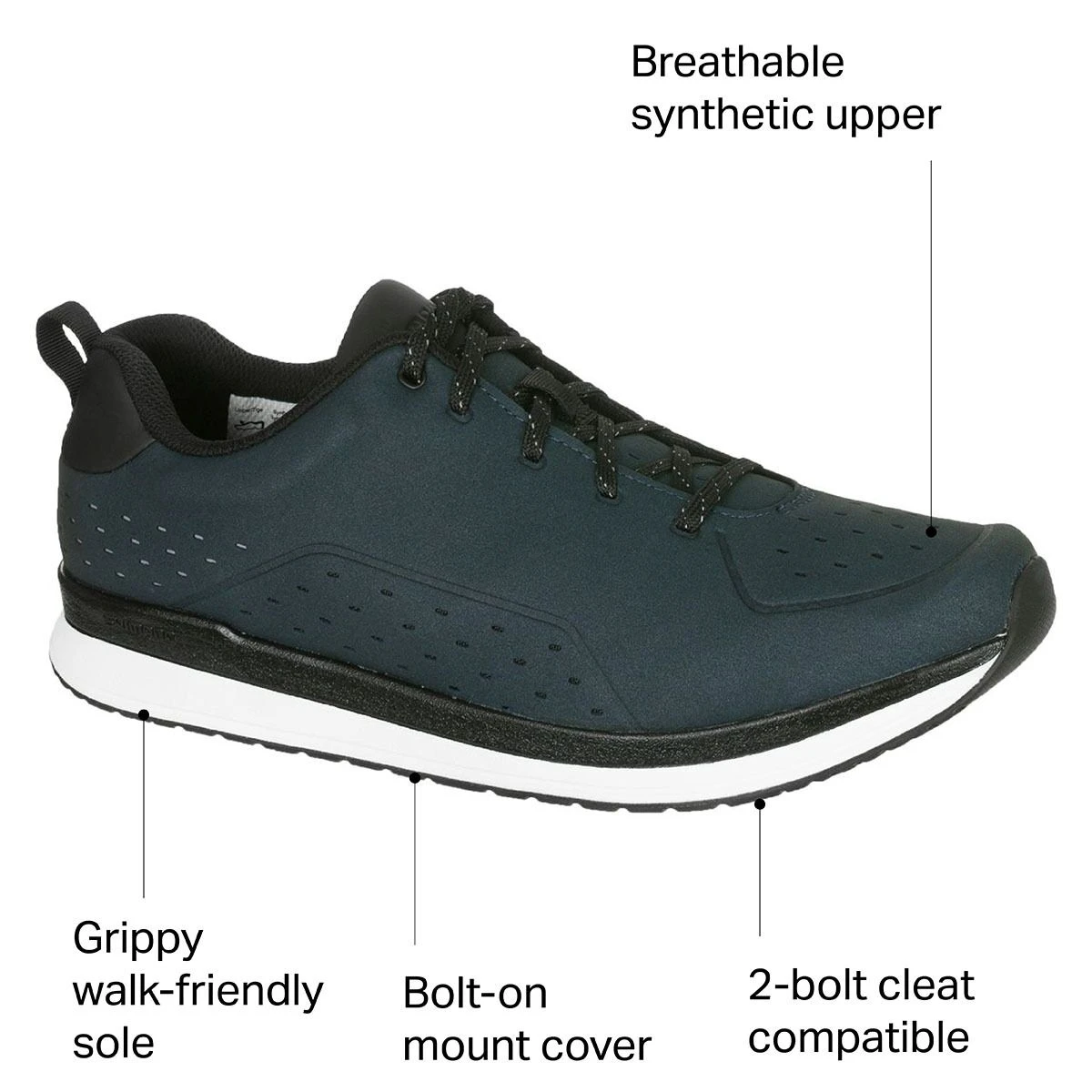 When you’re wanting a little versatility in your setup, reach for Shimano’s SH-CT5 Cycling Shoes. These commuter-friendly kicks give the aesthetics of a sneaker, but with the added security of two-bolt mountain bike cleat mounts, so you can clip in to your steed and hammer through the streets. Synthetic leather uppers hold up to the rigors of your commute, and let fresh air in through perforations in the toe box, and sides. A supple EVA midsole cushions your arch on long rides or sprints into the bodega after work to snag dinner. The lace-up closure keeps your foot secure, and looks just like your go-to kicks so your style stays on point even on your steed.