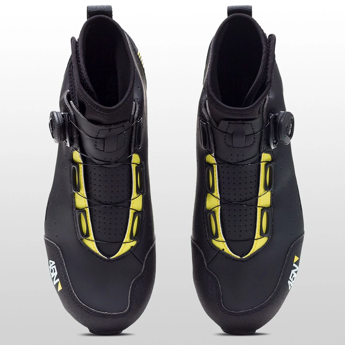 The Ragnarok uppers are constructed of a tough microfiber material paired with a neoprene ankle cuff to keep out the elements, and feature Tec Tuff reinforcements on the toe and heel that resist abrasion. A waterproof breathable membrane stops liquid from the outside, but allows vapor to be released from the inside. This ensures your feet stay comfortable during more intense efforts. Please note that despite having the waterproof membrane, the shoes themselves are not 100% waterproof as moisture could still slip in at the ankle. For extremely wet conditions, 45NRTH recommends covering the ankle with waterproof cycling pants for the best level of protection.