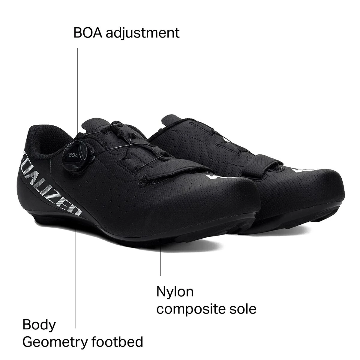 Specialized designed the Torch 1.0 Road Shoe for entry-level cyclists who want to clip into premium footwear for their first time. It features a scientifically-tested Body Geometry design that provides proper hip-to-foot alignment for a boost in power, increased efficiency, and reduced chance of injury. The moderately stiff sole balances between beginner-friendly comfort and pedal-pushing performance. Specialized equipped a Boa dial and hook-and-loop strap to fasten the supple upper snugly around your foot.