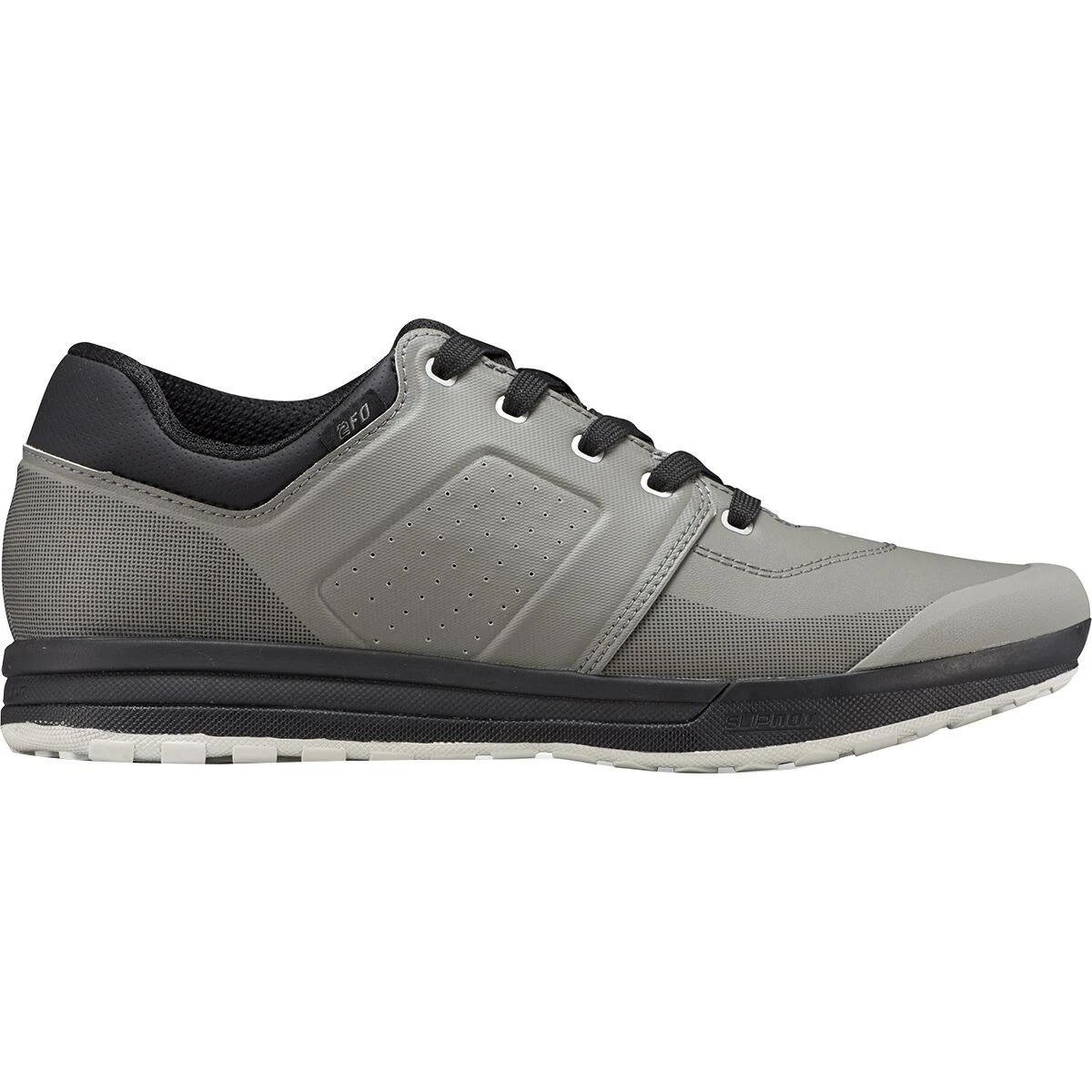 - A rugged shoe features casual tones for disguised performance
