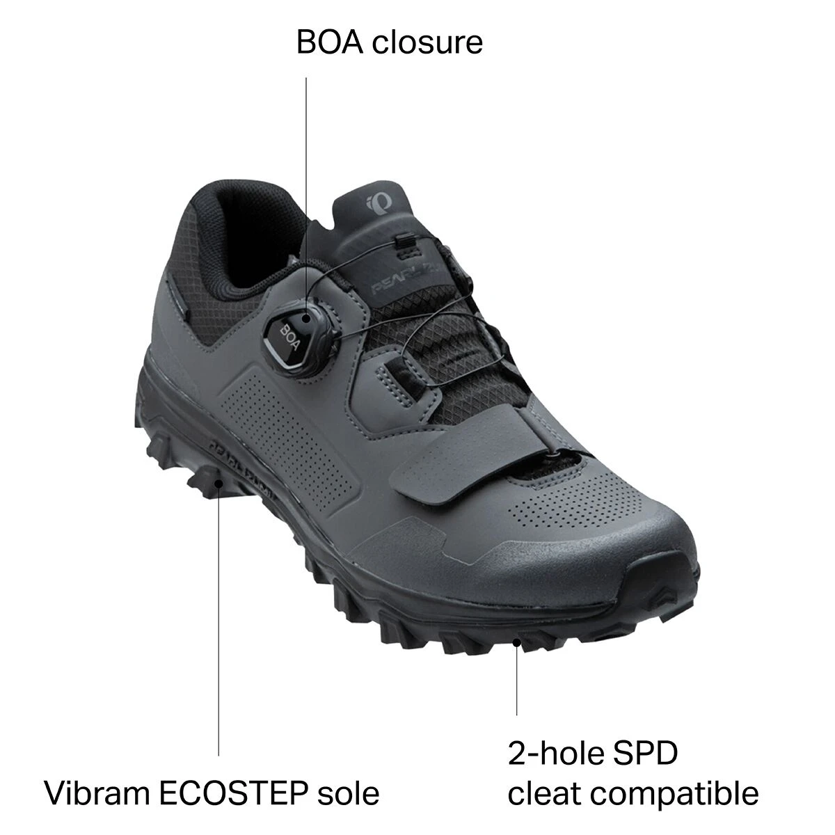 - Vibram Megagrip outsole digs while in off the bike
