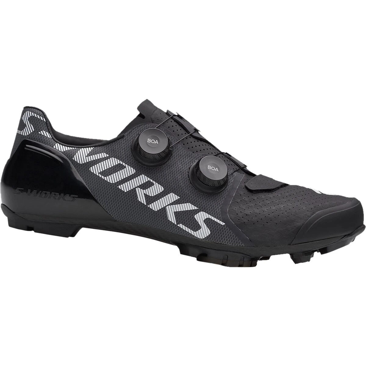 The S-Works collection showcases premier biking gear from Specialized, and the S-Works Recon Wide Mountain Bike Shoe delivers the mountain performance you demand on cross-country races. The S-Works Recon’s carbon plate is the lightest, stiffest option that Specialized makes, and it’s fine-tuned for transferring all your power to your pedal. The Dyneema mesh upper is bonded between layers of four-way stretch fabric and TPU for malleability in key areas and a formed fit. Extra room in the toebox provides better connectivity and overall comfort, while the PadLock heel counter locks your foot in place for a slip-proof feel.
