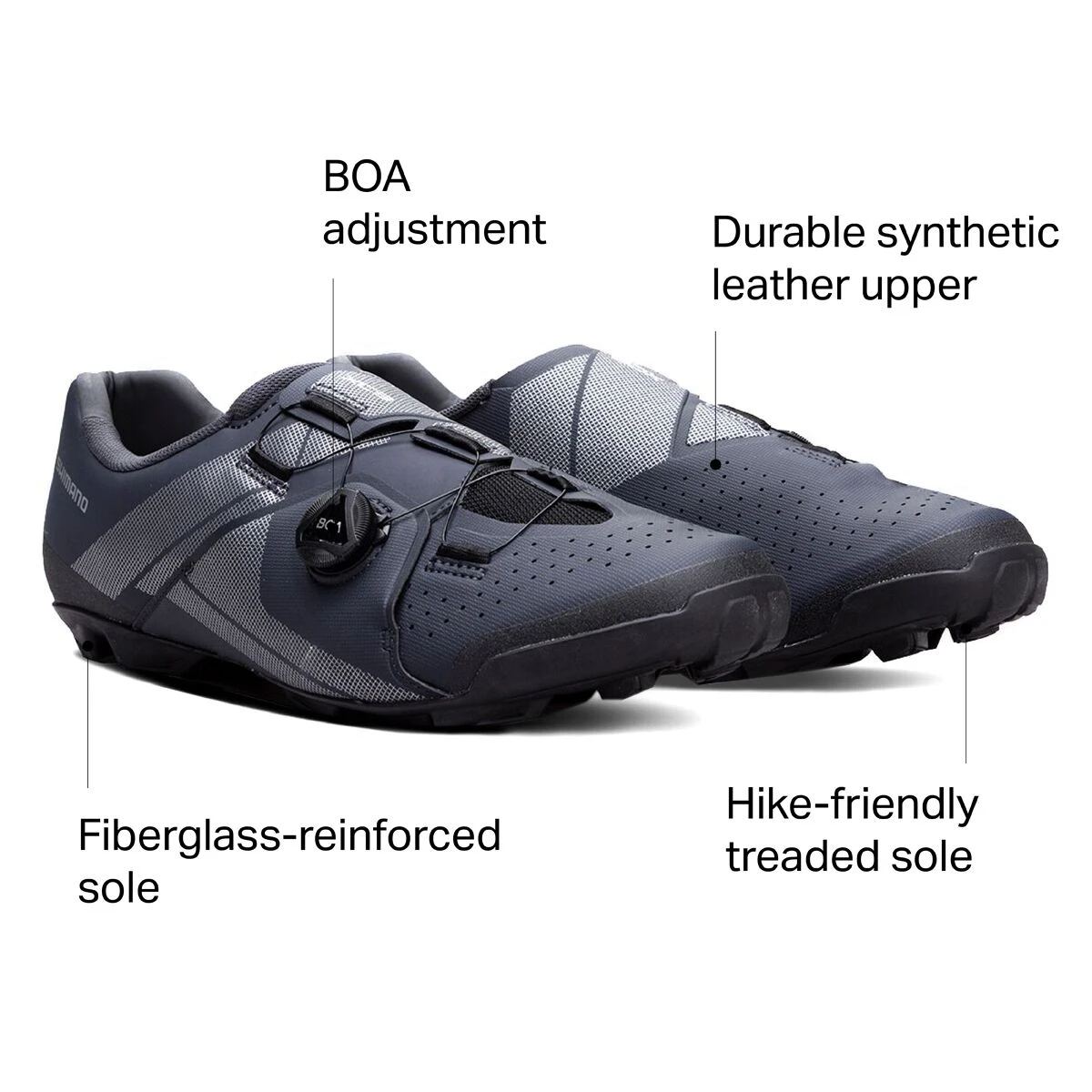 The high-energy and high-speed demands of cross-country racing require purpose-built equipment that carries no extra fluff, and the low-profile, single Boa design of the Shimano XC3 Mountain Bike Shoe is the tool of the trade. Starting with an integrated upper and midsole that sees synthetic leather wrapping around your feet with superior fit and comfort, the XC3 sets a no-frills image of performance-first design. The stand-alone Boa L6 dial cinches down the upper to precision comfort on your trail riding or race-pace interval sessions. With a low stack height, the XC3 reduces energy loss while pedaling, and the fiberglass-reinforced nylon sole transfers watts into the pedals to keep you in the hunt for the win. And rubber tread grips well should you need to put a foot down, sending it deep into a tight apex.