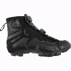 The MX145 starts with the MX Sport Last featuring a larger, roomier toe-box than its Comfort last, providing increased foot control through the heel and forefoot. Its resulting fit is designed for aggressive riding while retaining all-day comfort. Ideal for commuting, bikepacking, and mountain bikes who are in cycling shoes for long periods of time. Combined with the Hypergrip Enduro Sole with Ice Lock anti-slip lug inserts, the shoes have the stiffness to put power to the pedals and offer loads of traction off the bike as well. The uppers are a highly water-resistant waxed canvas and leather, and Lake employs a waterproof membrane to seal out the elements.