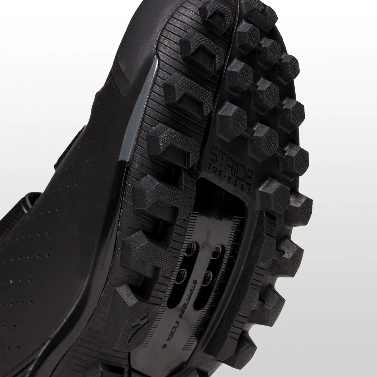 Whether the day ahead has open gravel, winding singletrack, or even some hike-a-bike in store, the Specialized Recon 1.0 Mountain Bike Shoe covers all your bases with a durable, efficient, and comfortable-in-the-dirt design. Courtesy of Specialized’s exclusive STRIDE toe-flex technology, this shoe is able to deftly strike the balance of confident, natural movement off the bike and efficient pedaling in the saddle with a stiffness index of 6.0.